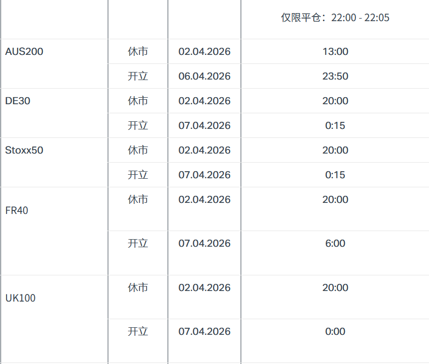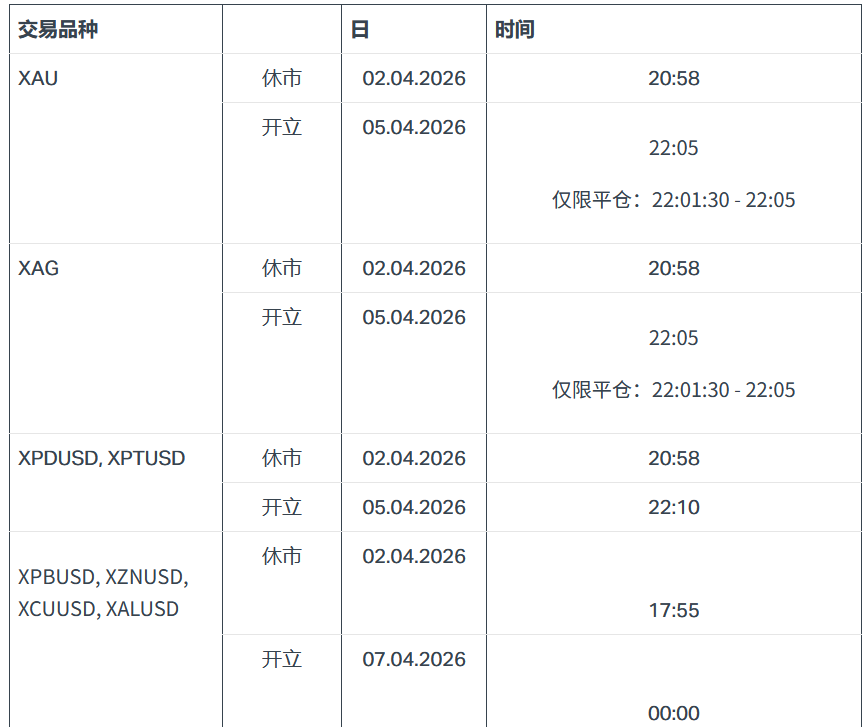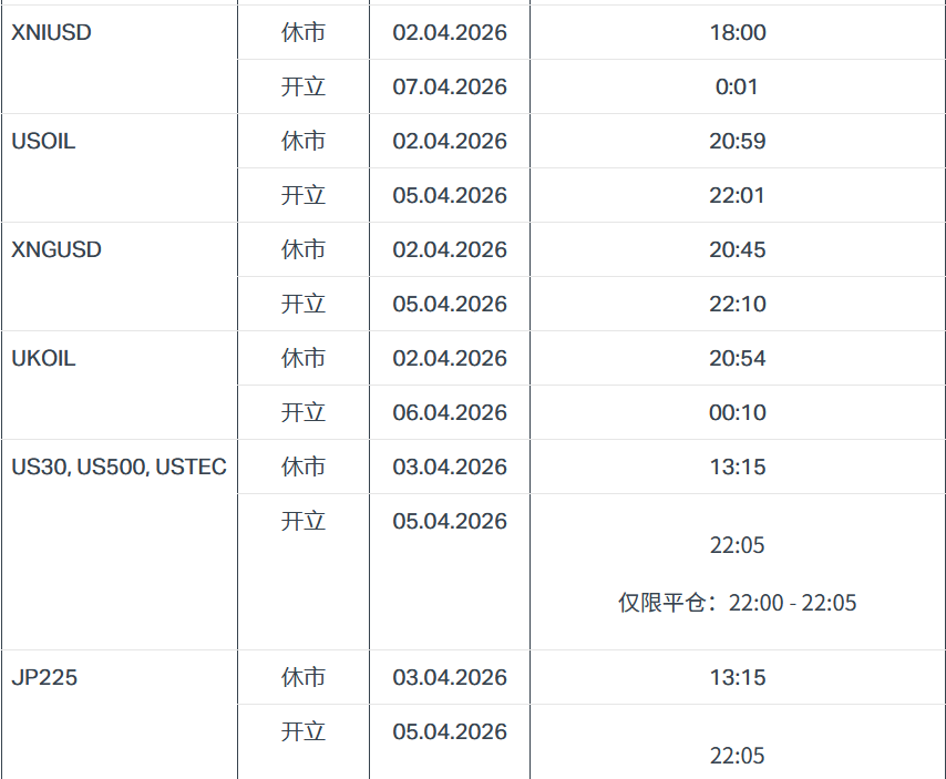 EXNESS2026年耶稣受难日复活节交易时间变更
