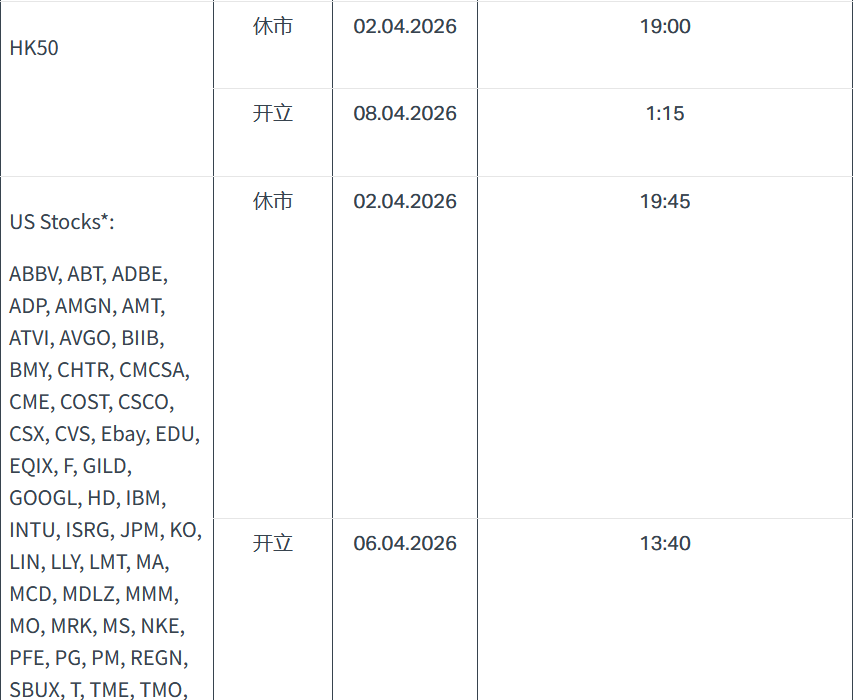 EXNESS2026年耶稣受难日复活节交易时间变更